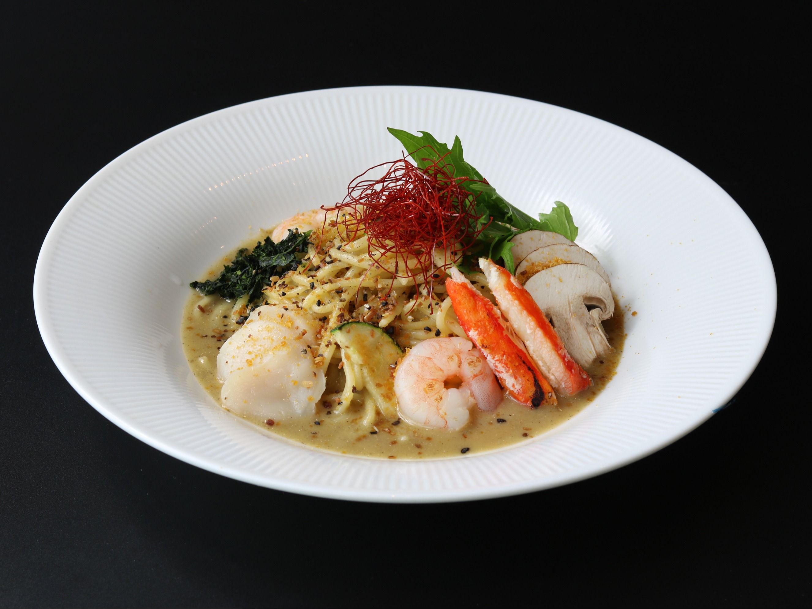 煮干しバターの麺に、シーフードをトッピングし、海の旨味とバターのコクが織りなす贅沢な一杯に仕上げました。