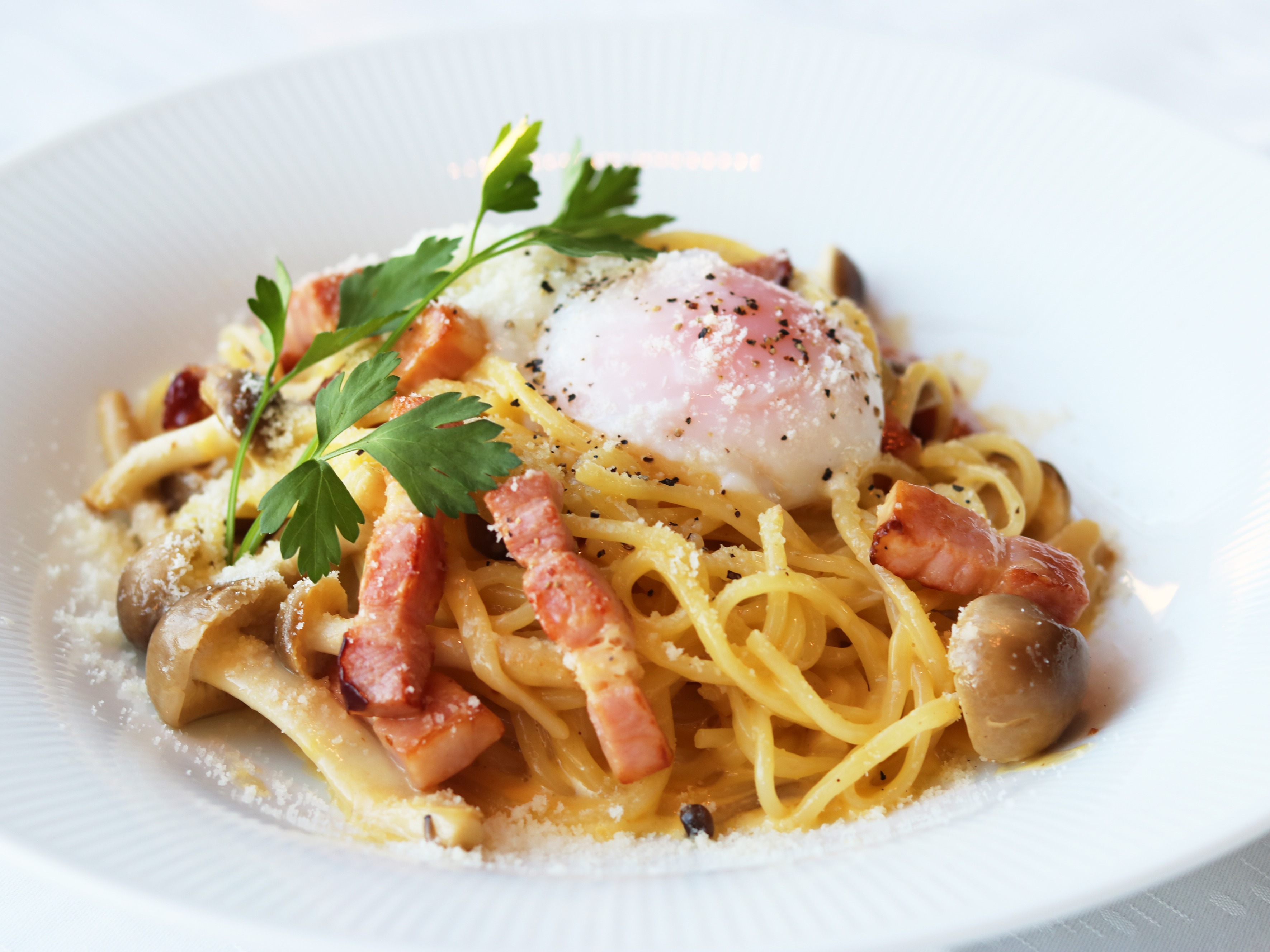 【期間限定】しめじとベーコンのカルボナーラ 温玉のせ