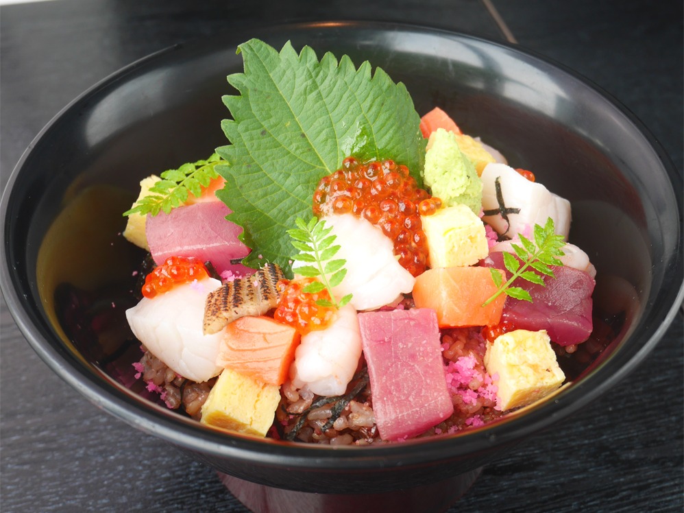鮪、海老など海の幸をたっぷりとちりばめた贅沢な逸品。
